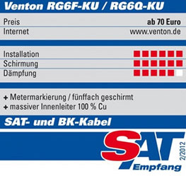 Dieses hochwertige Premiumkabel des Herstellers Venton ist ideal für digitale Satellitensysteme (DVB-S / S2), Kabelfernsehen (DVB-C), terrestrischen Fernsehempfang (DVB-T / T2) sowie für Funkkommunikationssysteme und BK.